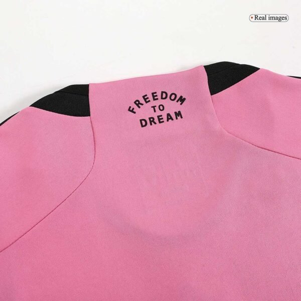 • Color and Design: The jersey's eye-catching pink and black color scheme is a nod to the club's vibrant identity, complemented by a subtle 'M' pattern woven throughout. Central to the jersey's design is the club's bilingual motto, 'Freedom to Dream' & 'Libertad Para Soñar', which is more than just a slogan—it's a call to action for fans and players alike to aspire without limits.