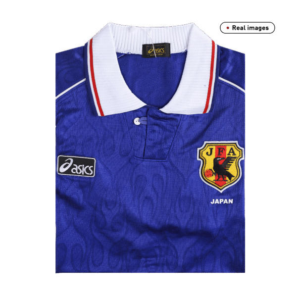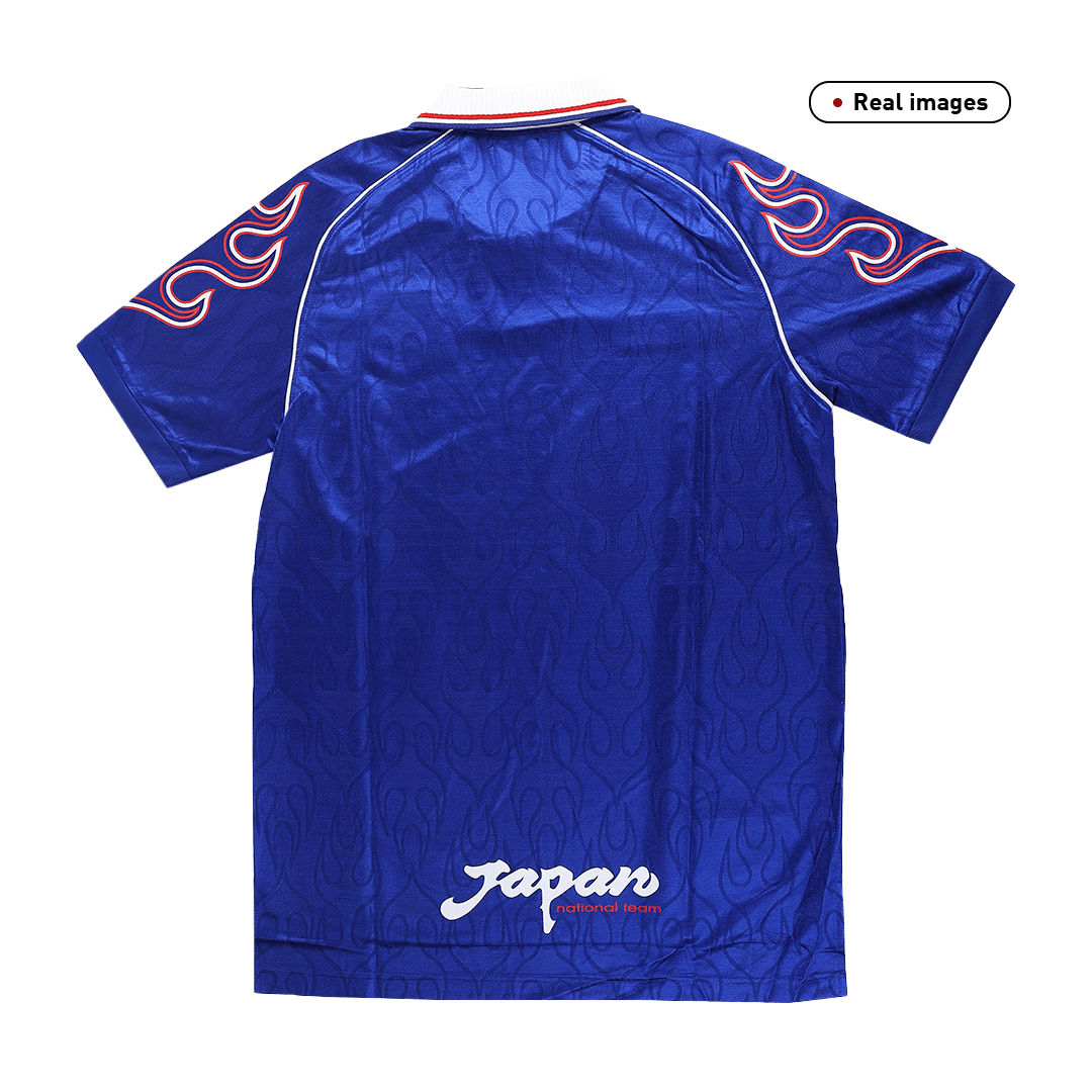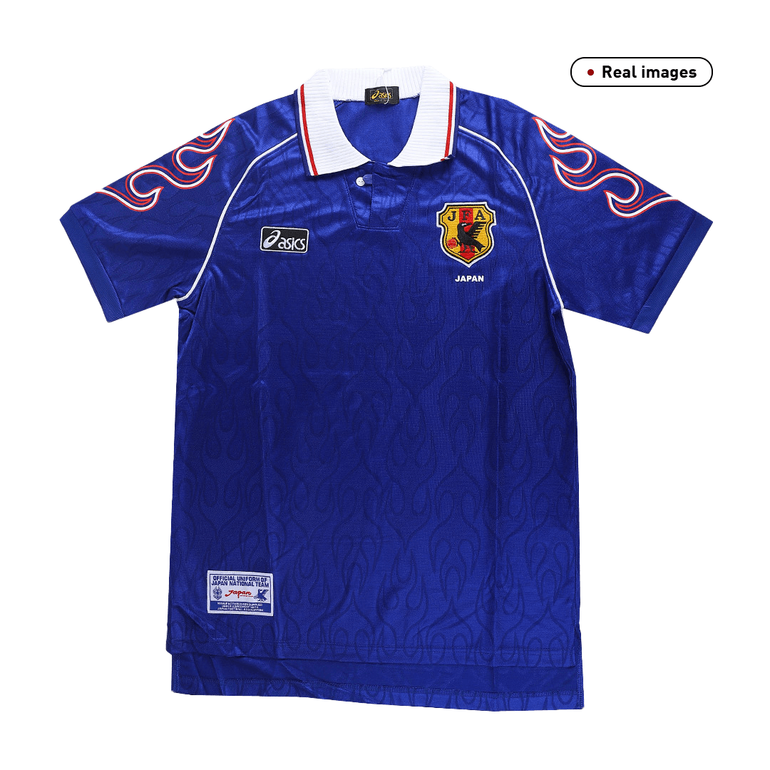 Retro Japan Jersey Home 1998 By Asics OUT NOW! The nation's first ever World Cup appearance was in 1998, where Japan lost all their games. The first two fixtures went 1–0 in favour of Argentina and Croatia, and the campaign ended with a 2–1 defeat to Jamaica. Japan impressed, however, as all three defeats were only by a one goal margin. This is the Japan Jersey 1998 worn by the Japan national football team for the 1998 World Cup. The Japan Jersey uses their iconic blue in colour. And we can see Japan camiseta futbol 1998 is embellished with flames on the shoulders, a design that shocked the world at that time. In conclusion, this Japan Jersey is inspired by this historic moment, it's no doubt that 1998 retro Japan camiseta futbol is a tribute to the spirit and passion of Japanese football.