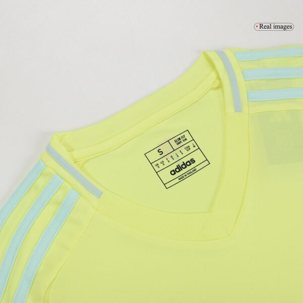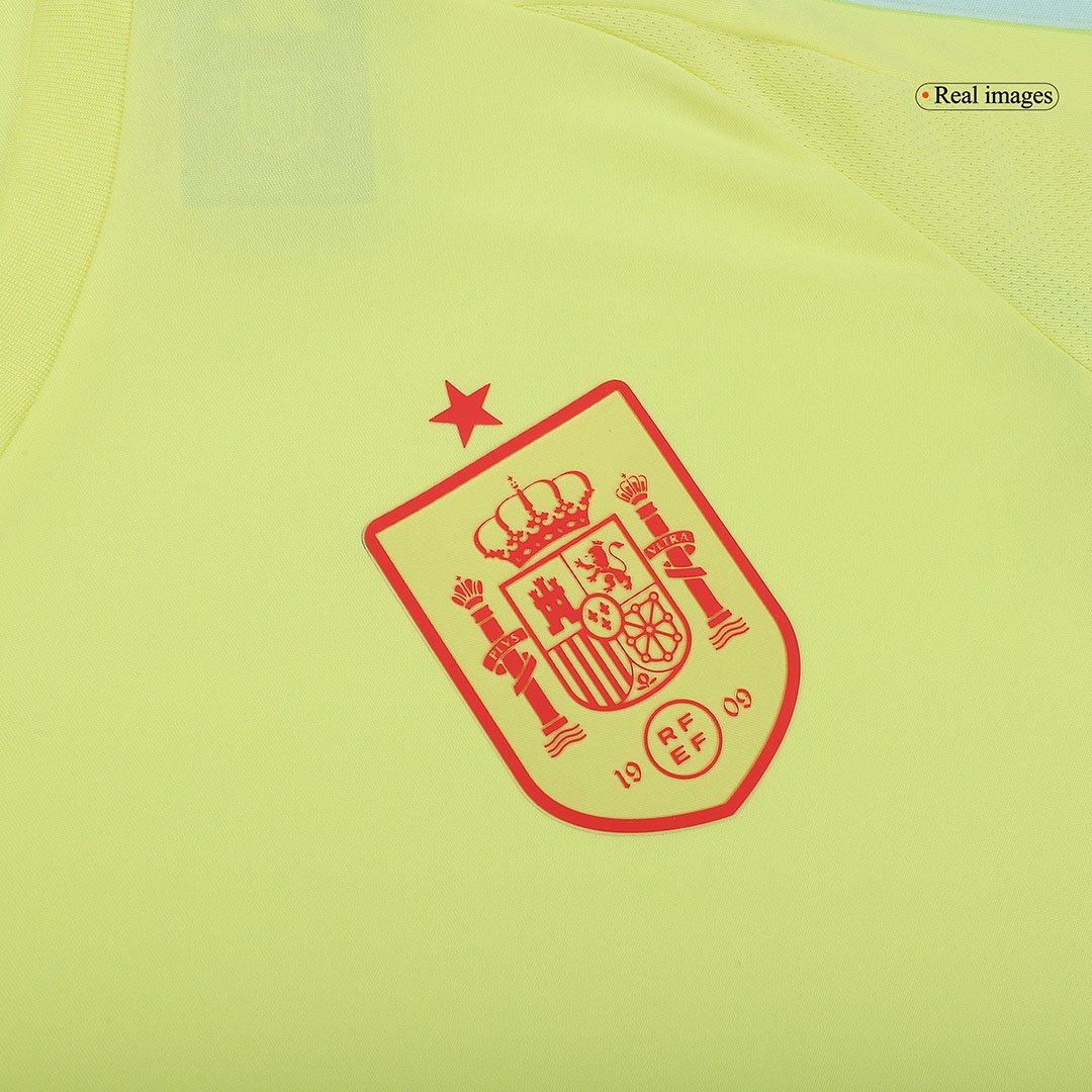 This Spain away soccer jersey EURO 2024 is specially made for football fans. The color of Spain jersey is very bright and beautiful, like yellow flowers blooming in the sun in summer. This Spain jersey features a woven team crest and carnation logo to bring a fresh sparkle to your football fandom. The Spain jersey away EURO 2024 features soft fabric and is designed to keep fans comfortable.